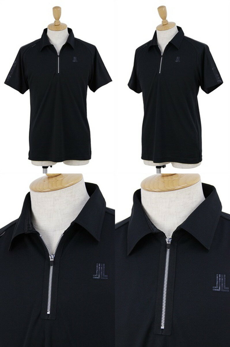 素材 ポリエステル100% 機能 ストレッチ 吸水 速乾 UVカット クーリング 涼しい素材 ハーフジップアップ ラグラン袖 カラー ブラック(BK03) 説明 袖の同色ピンストライプラインと、胸元のマーブル調のワンポイントロゴがポイントになったスタイリッシュな半袖ハーフジップポロシャツです。